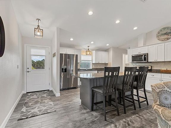 Experience the best of Florida waterfront living with UNMATCHED VIEWS & HIGH AND DRY. This beautifully maintained 3-bedroom, 2-bath pool home located on the peaceful Butterford Waterway in Rotonda Lakes and NO FLOOD INSURANCE IS REQUIRED. From the moment you arrive, this home impresses with its pride of ownership and model-like presentation. Inside, an open-concept layout creates a bright, inviting atmosphere designed for both everyday comfort and effortless entertaining. Tile flooring flows throughout, complementing the light-filled living spaces and contemporary finishes. The kitchen serves as the heart of the home, offering stainless steel appliances, granite countertops, generous cabinetry, and seamless connection to the main living areas. A desirable split-bedroom floor plan provides privacy, with a spacious primary suite featuring walk-in closets and a relaxing retreat-like feel. Step outside to your private outdoor oasis—an oversized screened lanai overlooking a heated saltwater pool (2023), perfect for year-round enjoyment. The tranquil backyard is framed by tropical landscaping and serene water views, ideal for kayaking, fishing, watching wildlife, or unwinding at sunset. A firepit and patio area extend the living space outdoors, creating the perfect setting for gatherings or quiet evenings under the stars. Additional highlights include hurricane impact windows, irrigation system, generator-ready electrical panel, expanded driveway, extended garage for oversized vehicles, and ample storage throughout. Not located in a flood zone and offered furnished, this home is truly move-in ready. Rotonda Lakes offers a relaxed, active lifestyle with a low annual HOA fee of $135, supporting a community park, pavilion, and social events. Nearby amenities include golf courses, pickleball and tennis courts, scenic biking and hiking trails, and easy access to the Gulf of Mexico and Manasota Key beaches—just 15 minutes away. Whether you’re searching for a full-time residence, winter retreat, or investment opportunity, this waterfront home delivers comfort, lifestyle, and value in one exceptional package.