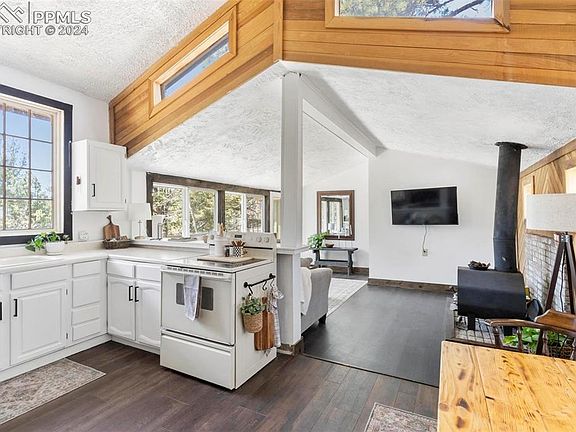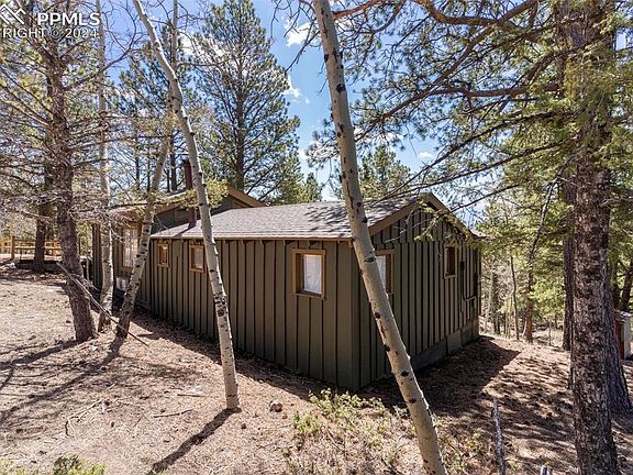 Charming 1/3 acre cabin nestled in the woods of Tranquil Acres! This 1 bed, 1 bath fully furnished retreat offers a serene escape or a lucrative investment opportunity. Located just outside Woodland Park City limits and 5 minutes from Charis Bible College, this property is a prime choice for investors or first time home buyers. Enjoy breathtaking views of Pikes Peak from the back deck. The cabin features vinyl flooring with a modern country farm aesthetic. With a water district hookup and a new septic tank installed in 2022, it's well-equipped to be your starter home or accommodate guests comfortably.