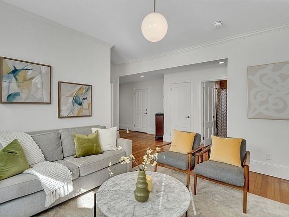 Tucked away on a lovely, tree-lined street, this 2BR, 2BA unit is centrally located in Mid-Cambridge, just 0.6 mi to the Red Line T at Central Sq, between Harvard & Kendall/MIT. Fully renovated in 2011, the unit is brimming with conveniences tailored for today's urban dweller. This home showcases character details: soaring high ceilings adorned with crown moldings & hardwood flooring throughout. The well-appointed kitchen features cherry cabinetry, granite counters, SS appliances, & a generous versatile granite center island for prepping, dining, or entertaining. Two generous sized rooms, one with an en suite bath. In-unit washer/dryer ensures your laundry days are a breeze, while a dedicated basement storage offers extra space. The addition of a brand-new furnace & central air guarantees optimal comfort throughout the changing seasons. Step out onto the private porch for coffees or twilight musings. For larger gatherings, the oversized patio beckons. Truly an exceptional private oasis