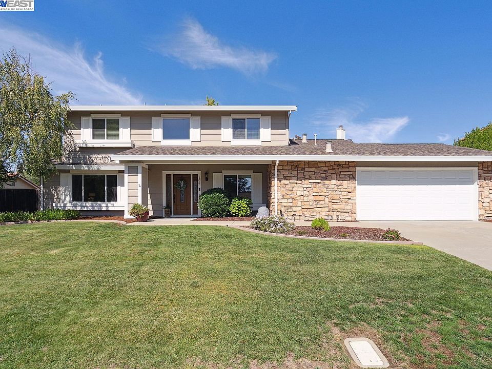Wow! Traditional style home in popular Bollinger Hills. Desirable 1 full bed/bath on main level. New interior paint throughout. New light fixtures. Kahrs engineered hardwood flooring throughout kitchen, family room, & downstairs bedroom. Updated kitchen includes granite countertops, stainless steel appliances, tons of storage, and dedicated pantry. Family room with cozy gas fireplace, custom built-in bookcases. Upstairs features primary bedroom with vaulted ceilings, walk-in closet, and ensuite bathroom remodeled in 2019. 2 other bedrooms upstairs featuring closets with built-in organizers. Updated hall bathroom. New attic insulation and ducting installed in 2022. Beautifully landscaped rear yard. 2 car garage. Close proximity to 680 freeway & Crow Canyon Rd. Nearby City Center at Bishop Ranch shopping & restaurants. Access to hiking at Bishop Ranch Regional Preserve. Wonderful community amenities including clubhouse, pool, tennis courts, pickleball courts & playground! Zoned for top rated San Ramon Valley Unified School District. You don't want to miss this one!