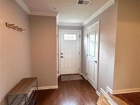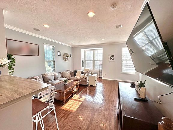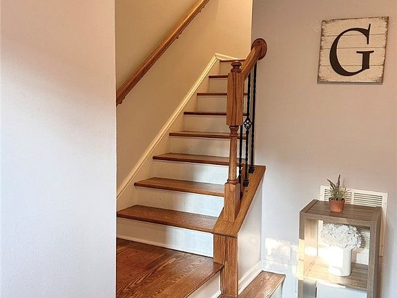 Introducing this beautifully updated end unit townhome offering the perfect blend of elegance and functionality. You'll be greeted by gleaming hardwood floors, high ceilings and natural lighting for an airy and inviting ambiance. The main level open floor plan features a modern kitchen boasting white cabinetry, stainless steel appliances, breakfast bar, center island and dining area. The living room provides ample space for modern living, equipped with a surround sound system and a convenient half bath for guests. This charming property features tray ceiling crown molding in the master bedroom suite, two additional spacious bedrooms, two full baths and upstairs level laundry facilities. Step outside to the enchanting deck crafted with no maintenance materials offering a serene and private wooded peaceful landscape. The lower level is fully finished, offering an additional living space with potential for another outdoor retreat. Great tucked away location near shopping and restaurants.