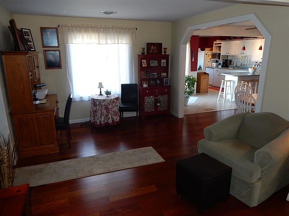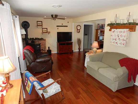 Impressive 2-3 bedroom Emden, Illinois corner lot ranch style home with a view of the countryside -- small town living at its finest! Larger than it looks, this sprawling residential dwelling needs nothing but YOU! Step inside and expect to be impressed with the wonderfully open and inviting living/office/dining/kitchen concept. The L shaped living/office concept boasts great floor space, front bay window, corner woodburner, and gleaming recently installed engineered wood flooring. The kitchen/dining area is quite expansive and makes cooking in addition to entertaining truly delightful! Dining area features plenty of room for a large table and chairs -- kitchen boasts a sleek backsplash, breakfast bar, adjacent laundry room area, and beautiful tile flooring. The generous interior floorplan also features two wonderfully large bedrooms -- rear bedroom features four closets!, optional third bedroom/den (does not have a closet) with supplemental electric baseboard heat, full remodeled hall bath, and superb storage space! Property also features an attached garage, great rear patio for outdoor entertaining (accessed through sliding glass door in kitchen), maintenance free vinyl sided exterior, newer vinyl windows throughout, architectural roof (2012), furnace and central air conditioning unit (2013), and a rear storage shed. Great 80X140 corner lot affords ample space outdoors to garden, etc. City water/private septic system. Situated on the edge of small town Emden, Illinois, you will find this nicely updated move-in ready ranch style home -- 108 Archer is without question a must to view! Won't last long!