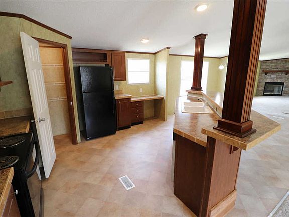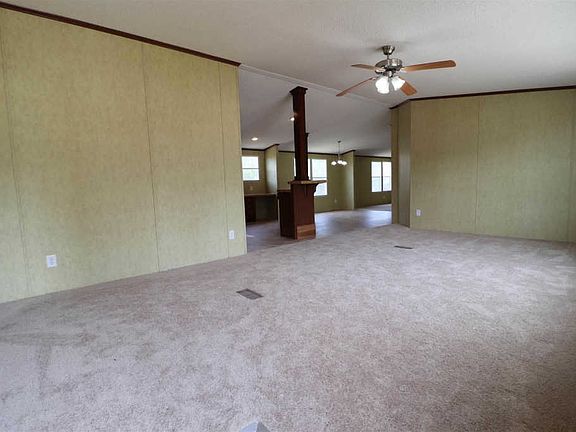 This newly updated 2008 River Burch mobile home features 4 bedrooms, 2 full bathrooms, spacious den, living room with fireplace, and dining room. Brand new carpet throughout and new AC condenser. The master suite is sure to please with its own private master bath with double vanity, garden tub, separate shower, and HUGE walk-in closet with built-in dresser and tons of storage. The kitchen is open to both the living room and den and features a bar perfect for extra seating, gorgeous ornate wood hood vent, and pantry. The home also features a mud room with washer and dryer which will convey with the property. You don't want to miss this!