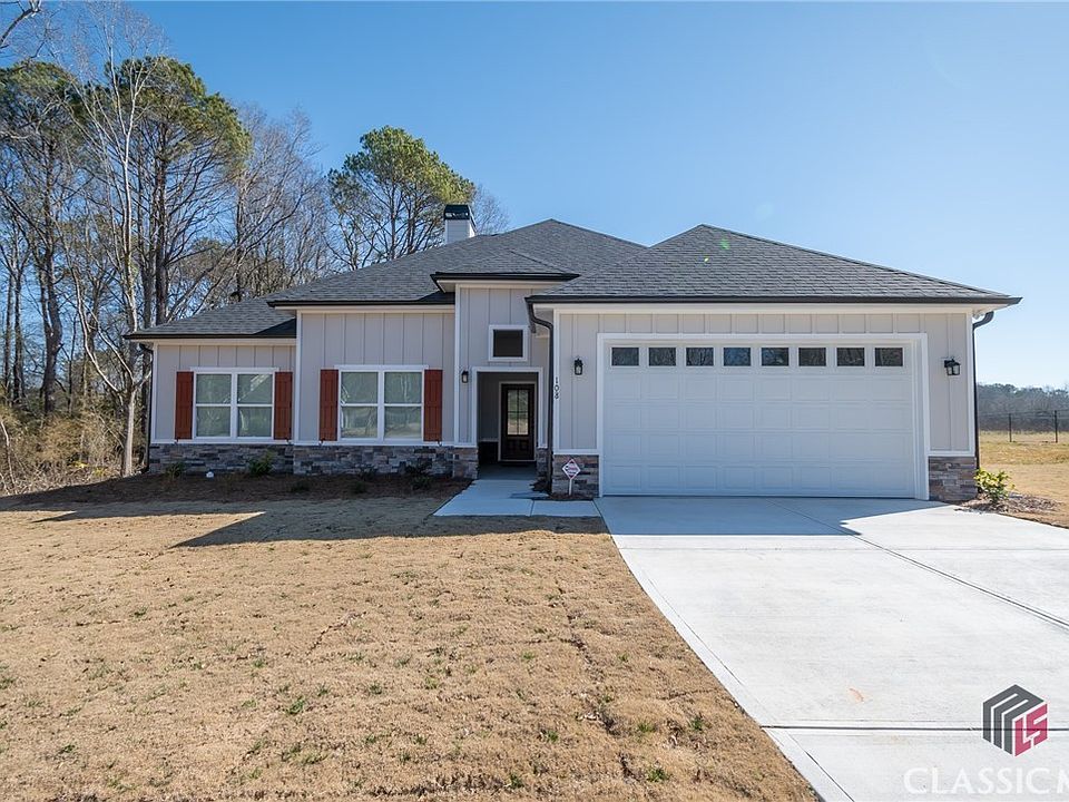 Welcome to 108 Ashbrook Dr! This home is BRAND NEW and waiting for you and yours. Walk in through the front door, through the foyer, and you are greeted by a gigantic living room with recessed lighting, gorgeous wooden beams on the ceiling, and a cozy stone fireplace. To your right, the living room flows seamlessly into a kitchen that any chef would love. You will notice beautiful quartz countertops, a massive kitchen island and tons of cabinets. Beyond the kitchen is a mudroom, walk-in pantry, and the laundry room with even more cabinets! Back through the living room to the other side of the house, you will find 4 bedrooms and 2 full bathrooms...3 to the left and the primary bedroom to the right which includes an enormous en-suite bathroom and walk-in closet. Back through the living room, you can walk out to the covered back porch that leads to an expansive, level back yard ready to be enjoyed. This home is convenient to all of the restaurants, shops, and entertainment that the Athens Eastside has to offer and is only a few miles from UGA. They don't get more "move-in ready" than this. Come take a look!