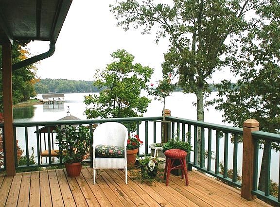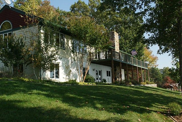 Stunning Lakefront Home on Point Lot - Price reduced to sell this season! 348 feet of waterfrontage on beautiful Smith Mountain Lake. One owner home custom built by Marlen Davis in prime lake location with incredible views on a point lot. Huge cherry kitchen with granite island opens to Great Room with dramatic pine cathedral ceiling and West Virginia fieldstone fireplace flanked by windows to enjoy the lake views. The home also features formal rooms and a spacious entry level Master Suite. The lower level has a spacious carpeted den, two bedrooms, and a full bath. Most rooms open to the numerous covered and open porches for enjoying the panoramic views and outdoor living. The dock is situated just a few steps from the home but situated to the side for maximum lake viewing.