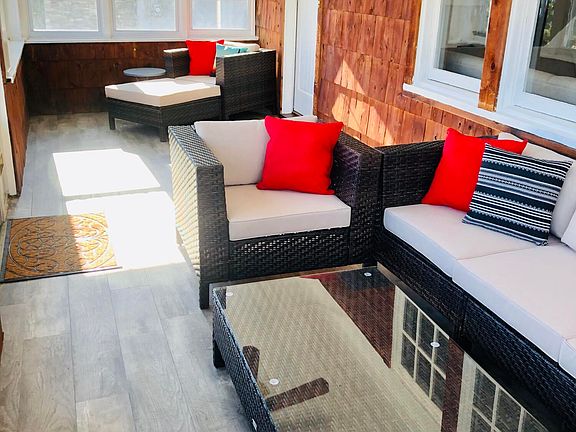 - Exterior features: Architecture Style: Cape Cod, Deck, Detached, Driveway, Flooring: Wood, Heating system: Hot Water, Lighting, Off Street, Outdoor Shower