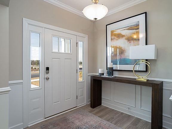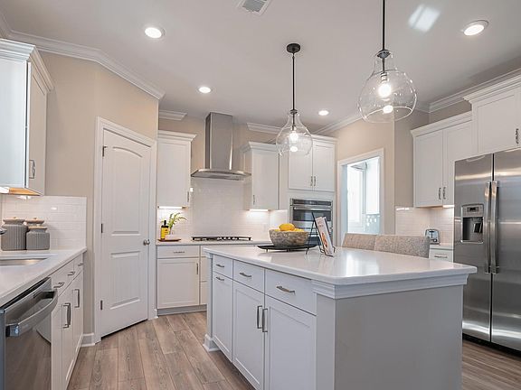 The Palmer with 4 bedrooms, 2.5 baths, sunroom, formal dining with butler's pantry, and 2nd floor porch will have a pond view. From the foyer entry, you'll see the coffered ceiling in the formal dining room. The butler's pantry is located between the kitchen and dining room. The gourmet kitchen will have a white farmhouse sink, walk-in pantry and a work island. The family room and sunroom will bring in lots of natural light into the home. The primary suite plus 3 bedrooms are located on the 2nd floor, where you also access another covered porch from the hall. Dual closet space for the primary bedroom also has direct access to the laundry room. Lot of nice features are found in this home! Our 1-2-10 year warranty will give you peace of mind. Superior energy efficient construction includes 15 SEER HVAC and R-38 ceiling insulation. Come check out our outstanding quality, fit and finish! Interior photos shown are of a furnished model in another community. Schedule an appointment to view!