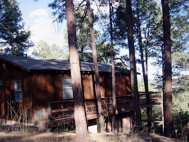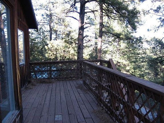 AFFORDABLE PRICE ON THIS MTN. GETAWAY CABIN WITH LEVEL ACCESS. CLASSY MAIN LEVEL REMODEL INCLUDES OUTSTANDING NEW KITCHEN, WHIRLPOOL APPLIANCES, CUSTOM CABINETS & TILE COUNTERS & FLOORS. BATHROOMS W/ NEW TILE & FIXTURES. BEAMED CEILING IN MAIN LIVING AREA. 2 BEDROOMS ON MAIN LEVEL AND TWO DOWNSTAIRS W/ BONUS SLEEPING AREA. LOVELY & PRIVATE TREE TOP VIEWS OFF FRONT DECK AREA MAKES YOU FEEL WORLDS AWAY BUT IT'S A CLOSE TO TOWN LOCATION. PLENTY OF PARKING FOR EXTRA CARS. SF PER SELLER.