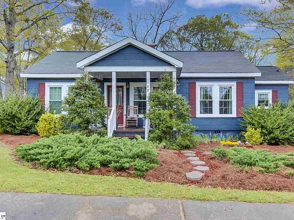 Charming historical home within walking distance of downtown Fountain Inn. With solid wood doors, original hardwood flooring, and vintage touches throughout, this home is appealing from every angle. It's easy to imagine yourself relaxing on the front porch in a rocking chair with your favorite summertime beverage. Take a minute to appreciate the hardwood floors beneath your feet as you enter the home, stepping into the spacious Living Room. A wood-burning brick fireplace is the focal point of the living space and features a whitewashed shiplap panel above the mantle that is perfect for displaying wall art or photos. The Breakfast Room is also open to the living room, making the entire space feel open and airy. The first bedroom is to the left of the Living Room and the second bedroom is just down the hall, also on the left hand side. Both bedrooms have large windows and vintage door accessories, making them the perfect blank canvas for any style of decor. The bathroom is conveniently located between the second bedroom and the Master Bedroom. The bathroom features an updated sink and vanity, stylish black and while tile floors, a tub/shower combo with glass tile accent border, and a walk-in linen closet. The Master Bedroom is at the end of the hall and is nicely sized and appointed. As you go back through the main living space, you will enter the renovated Kitchen, just off of the Breakfast Room. The Kitchen is spacious and bright, with plenty of counter space, ample cabinets, and a gas stove. The laundry room, which could also be used as a mud room, is between the Kitchen and the back deck, completing your tour of the interior. Outside, you will find a cozy deck, large fenced back yard, and a roomy storage building styled like a miniature barn. In addition to these wonderful features, this home is also close to the Fountain Inn farmer's market, library, and coffee shop, as well as I-385. If you're looking for a home with character and charm don't let this one slip through your fingers. Schedule your showing today!