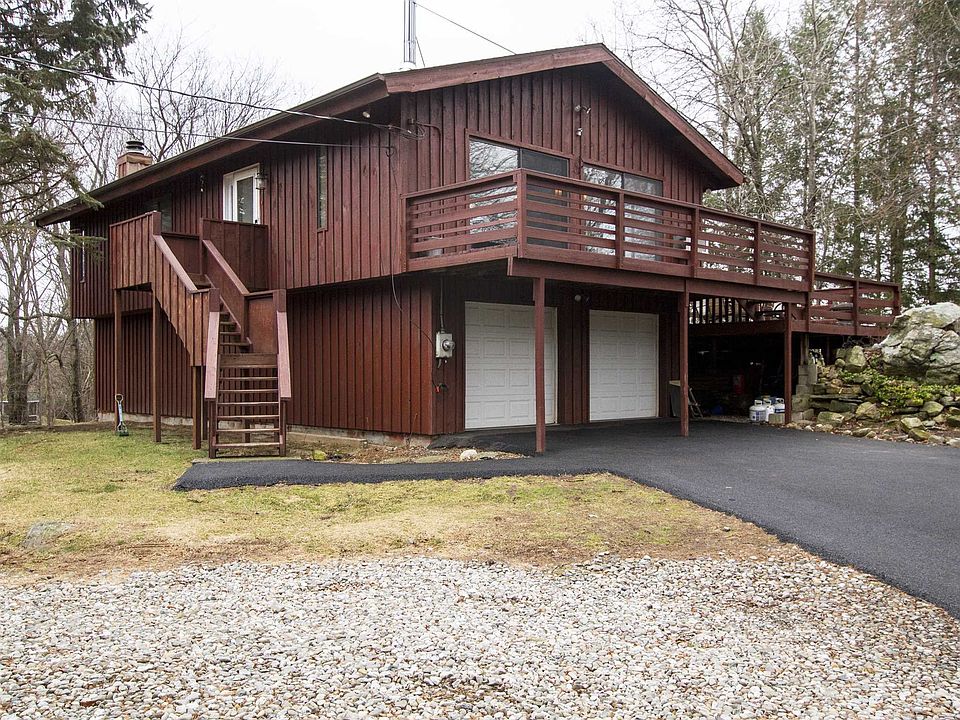This contemporary Raised Ranch has an inviting open floor plan, windows galore and a wrap around deck. Hardwood floors, cathedral ceilings with recessed lighting, a wood stove are just some of the things this one has to offer. The large kitchen has a sit-up counter. The dining room leads out to the deck and down to a large level private yard. The lower level consists of the family room with fireplace, a second full bath, laundry/utility and a walkout to the yard or the two car attached garage. Recent upgrades include roof, asphalt driveway, water heater, septic system and a 12x12 outdoor shed. This house is conveniently near Taconic Parkway, Route 6, Shopping, Dining and the Jefferson Valley Mall yet private and secluded on a full acre of level land.