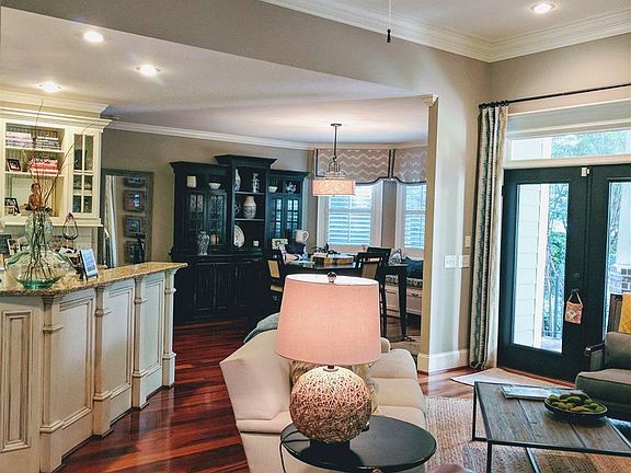 - Great Room: Molding, Entertainment Center, Bookcase, Floors-Hardwood, Ceilings-High (over 9 Ft), Ceiling Fan, Recessed Lights