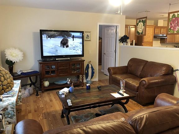 Lake Wallenpaupack Beautiful Move In Ready Raised Ranch home located in Tanglwood Lakes community offering an Open Floor Plan, Wood Floors, 4 Bedrooms including a private Master Suite with Walk In Closets, Central A/C, 2 Baths, Large Deck for entertaining or just relaxing, 2 Car Garage and lots of room for storage. The Basement has plumbing ready for you to finish for an additional bathroom. Community offers a Beach area, Dock area, Boat Launch, Tennis, Access to Golf and Clubhouse with Restaurant. Tanglwood Lake and Lake Wallenpaupack Lake Rights home.