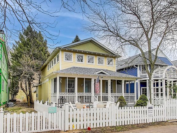 Just a few houses away from the beach access, this bright and open cottage has been refreshed and ready for summer! Often viewed as the best section of Beachwalk with alley access and a generous lot with the charm of the tree canopy as you enter. Main floor primary ensuite with 2 additional bedrooms + loft on 2nd level. Hardwood floors have been refinished, fresh paint in the living/dining area, carpet cleaned, front porch power washed and repainted, new exterior fence, and Spring yard cleanup complete! This home has one of the most coveted items in Beachwalk: a 2 car garage that could be converted into a coach house. This home is perfection; not too big and not too small. Great first time 2nd homeowner getaway with the ability for short term rentals. Just a short stroll to the pool, clubhouse, and tennis court. Wonderful outdoor firepit area, rear deck for grilling and dining, outdoor beach shower and cozy screened porch for lazy afternoons with a book. Move right in or rent it out weekly and enjoy it during the off-season. Low annual HOA fees. Be in the heart of Beachwalk and get to know your neighbors!