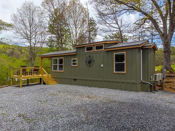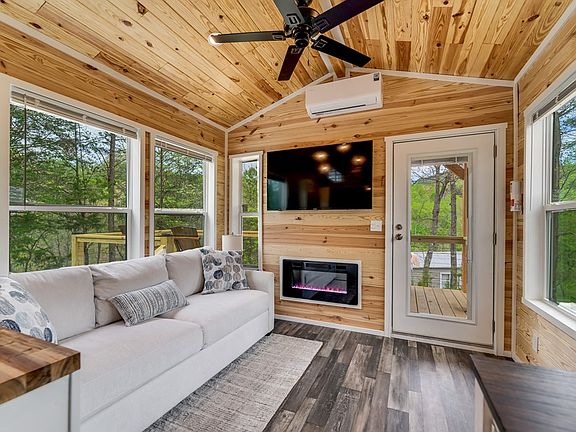 PRICE REDUCTION AND NOW FULLY FURNISHED!!! Discover the perfect blend of modern tiny living and mountain serenity in this brand-new 1-bedroom, 1-bath home nestled on a spacious .88-acre wooded lot in the peaceful tiny home community of Bear Pen Cove. Located just 15 minutes from the charming town of Franklin, this thoughtfully designed home offers both privacy and convenience. Step onto the covered front porch or the open deck and take in the beautiful mountain views—ideal spots to enjoy your morning coffee or unwind in the evening. Inside, vaulted ceilings and large windows create a bright and airy feel, while the open floor plan maximizes space and comfort. The cozy electric fireplace adds warmth and ambiance, and the efficient dual mini splits ensure year-round climate control. A loft provides extra sleeping or storage space, making the most of every square foot. Whether you're looking for a full-time residence, a weekend escape, or a vacation rental investment, this gem in Bear Pen Cove offers peaceful mountain living with modern comforts in a welcoming community setting.