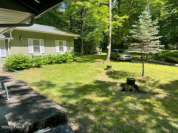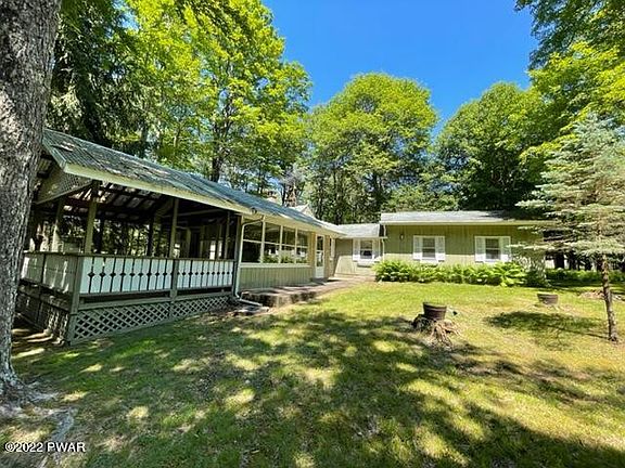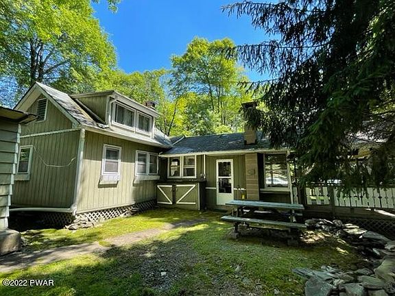 Check out this cute cabin near Promised Land State Park wit no HOA. Set on a very nice 0.82 acre parcel featuring a large lawn for lots of outdoor fun including a huge firepit. The cabin has a large covered porch, another large enclosed porch with a wood stove for the cooler weather and a one car attached garage. Inside there is a living room, eat in kitchen, 2 bedrooms plus a sleeping area with a low ceiling in a loft space. This is a great property for a getaway spot in the mountains without breaking the bank. 5 minutes to Promised Land State Park, 10 minutes to I 84 and 20 minutes to Lake Wallenpaupack. The home needs a little TLC and is being sold ''as is''. Must be a cash purchase as building is on piers., Beds Description: 2+Bed1st, Baths: 1 Bath Level 1
