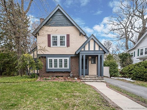Gracious Tudor set among distinctive custom homes on a tree-lined street exudes uncommon character & elegance. Gather fireside in the sprawling family room or enjoy quiet moments on the window seat basking in sunshine. French doors create privacy & add a touch of elegance to the formal dining room & sun room. The heart of this delightful home is the enviable 2019 kitchen graced with a center island, granite counters, black stainless appliances, walk-in pantry, gas cooking, subway tile backsplash & a wine chiller - an entertainer's dream! The 2nd floor features a huge master with walk-in closet, 2 additional bedrooms & an updated full bath. Discerning buyers will appreciate the sun-drenched spaces created by large windows, handsome hardwood floors, rich crown molding, built-ins & an abundance of closets. This well maintained home boasts recent gas heat, smart home technology, 2 car garage & a slate roof. Imagine enjoying summer fun in the private yard with large patio. A true gem!
