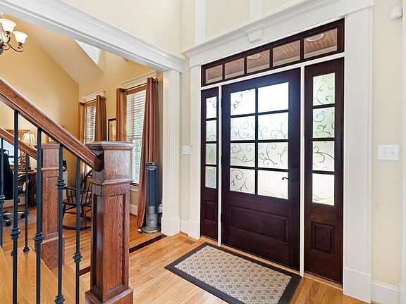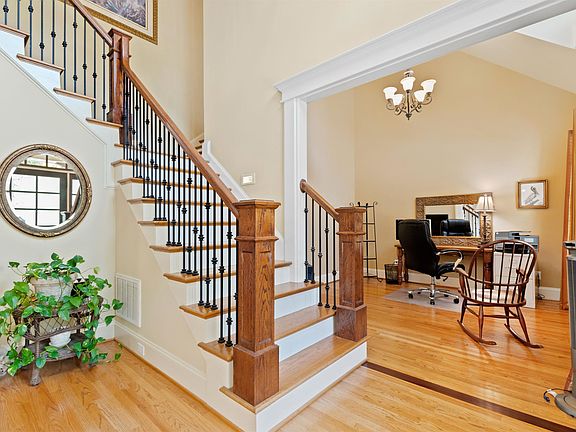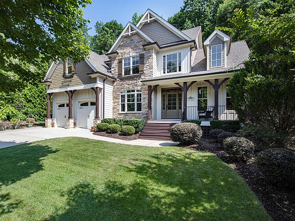 This charming Craftsman residence is situated in a quiet cul-de-sac and spans over 3000 square feet. On the main floor, you'll find a guest suite, an office, first-floor laundry, a spacious walk-in pantry, and both a separate dining area and a cozy breakfast nook. Upstairs, the second floor boasts a generously sized primary bedroom with an attached bathroom that includes a walk-in shower, a luxurious whirlpool garden tub, a dual vanity, and a roomy walk-in closet. Additionally, there are three more bedrooms and a family room on this level. The house showcases hardwood flooring, crown moldings, and vaulted ceilings, while offering plenty of storage space. You can enjoy amazing views from the front porch, the rear screen porch, or the patio.