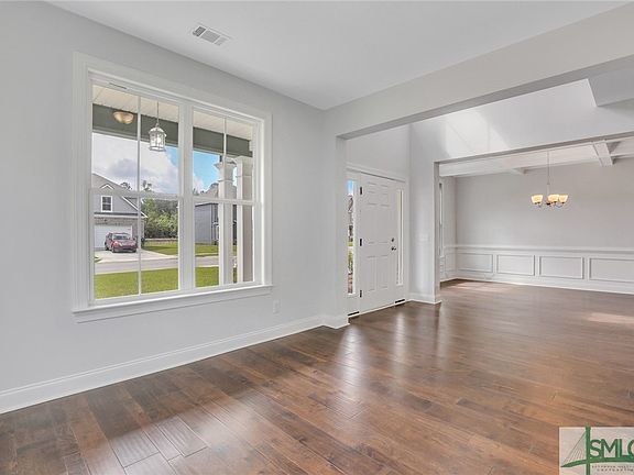 Be prepared to fall in love! This is the 3665 plan Faircloth Homes Of Savannah! An absolutely stunning 5 bedrooms 3 bathroom home full of upgrades! 2-story foyer, dining room with coffered ceiling, living room/study. Hardwood floors in the Dining, Great Room, Study, and Kitchen. 2-story Great Room with an arched wall of windows shining light onto the gorgeous spiral staircase. Off the Great Room is the Gourmet Kitchen with white cabinets, granite countertops and tile backsplash, double wall ovens and cooktop. Large island and breakfast room. The laundry room, a bedroom and full bathroom complete the downstairs. Upstairs you will find the Oversized Primary bedroom, gorgeous tiled bathroom with separate tiled shower, tub, separate vanities, and two walk-in closets. 3 additional bedrooms and another full bathroom complete the upstairs. Rear concrete patio covered with ceiling fan, 2-inch faux wood blinds, gutters, and irrigation system. Call for your private showing today!