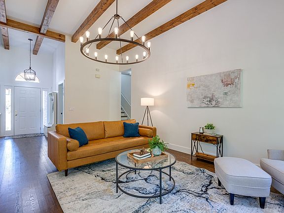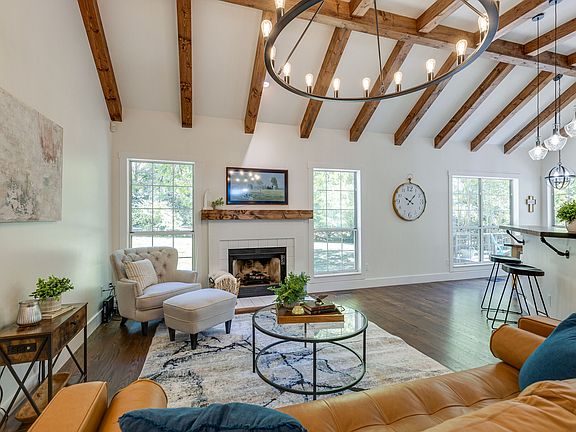 Rare, 1-level living w/mid-level bonus & office that backs to common area & walking trails (no backyard neighbors) Trails go under roads so no crossing busy streets on the way to school or Publix. All hardwood floors & 3 bedrooms on the main level. This home is perfect for entertaining! Beautifully renovated with stained wood beams - 20 foot ceiling, all new craftsman trim and interior doors, updated kitchen with quartz countertops, wood bar top and statement light fixtures. Oversized deck with beautiful shade trees - perfect for entertaining or enjoying coffee with nature. Brand new roof and gutters.