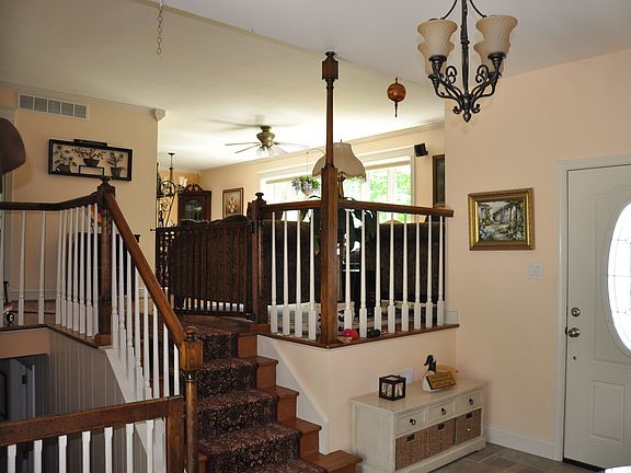 Bright and airy open concept bi-level; 5 bedrooms; 2 1/2 baths, all renovated with ceramic tile and granite countertops; renovated kitchen with stainless steel appliances and upgraded cabinets with self-closing drawers; 6-panel doors throughout, crown molding in living/dining/hall, two built-in corner hutches in dining room; large family room on lower level with fireplace; large foyer, ceramic floors throughout, hardwood floors top level; floored, lighted, and insulated attic for storage; 1 car garage--insulated with carpet, lots of electric (2-circuits) (bonus room), and lots of storage; outside house freshly painted; paver walkway in front of house; Pella and Andersen windows in kitchen and front rooms; all other windows replaced; new water heater 2017; wonderful large backyard which backs up to Alice Paul historical house; 8x12 shed with electric; backyard oasis including patio; pond, hot tub; posts for hanging your hammock; washer/dryer and 2nd refrigerator in lower level; ceiling fans throughout; all window treatments & screens; french drains & sump pump; great school system, and low taxes.
