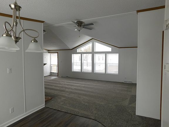 This beautiful, spacious double wide mobile home with an open floor plan will draw you right in! This home boasts three bedrooms, two baths, air-conditioning, large front window, lovely fireplace, laundry room, new carpet and laminate flooring, fresh paint, very spacious master bath with separate shower, nice large deck, along with a terrific 2 stall attached garage. Refrigerator, stove and dishwasher are included. Lot rent at Knollwood Estates is $280 for the 1st person ($10 additional per person) per month. Applicants over the age of 17, must complete a Knollwood application. Only applicants with an excellent credit history, a very good background, along with meeting our other requirements, will be accepted to live in this community.