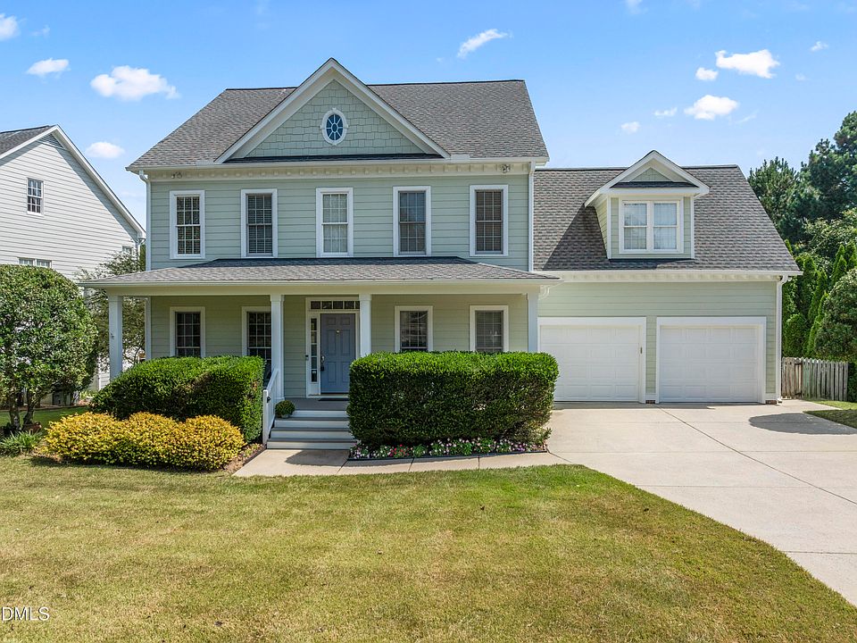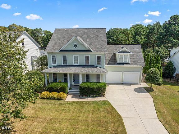 Spacious 5 Bedroom Home with Pond Views and Community Amenities. Welcome to this updated 5 bedroom, 3 bath home on a quarter acre of lush zoysia grass offering comfort, space, and a location that can't be beat. The covered front porch is perfect for a swing and morning coffee, while inside, freshly refinished hardwoods flow through the foyer, formals, kitchen, great room, and halls. The first-floor guest suite delivers extra-plush carpet, private bath access, and comfort for overnight stays. Upstairs, brand-new carpet, a roomy primary suite, three additional bedrooms, and a bonus room ensure space for everyone, plus bonus and primary share serene pond views. The unfinished walk-up attic adds over 500 square feet for storage or future expansion. The wide driveway leads to a 2-car garage, with a convenient first-floor laundry and utility sink just inside. The kitchen and great room are built for gathering, overlooking the neighborhood pond where you can fish or bird watch. Updates include new stainless steel appliances, fresh flooring, and finishes throughout. Danbury of Regency is a community where neighbors connect and events bring people together. With two pools, tennis courts, and a playground, there's plenty to enjoy. Ideally located, this home offers quick access to all the Triangle has to offer with shopping, dining, and major routes just minutes away. Seller is a Licensed Broker. Home Warranty Included. Termite Bond in place.