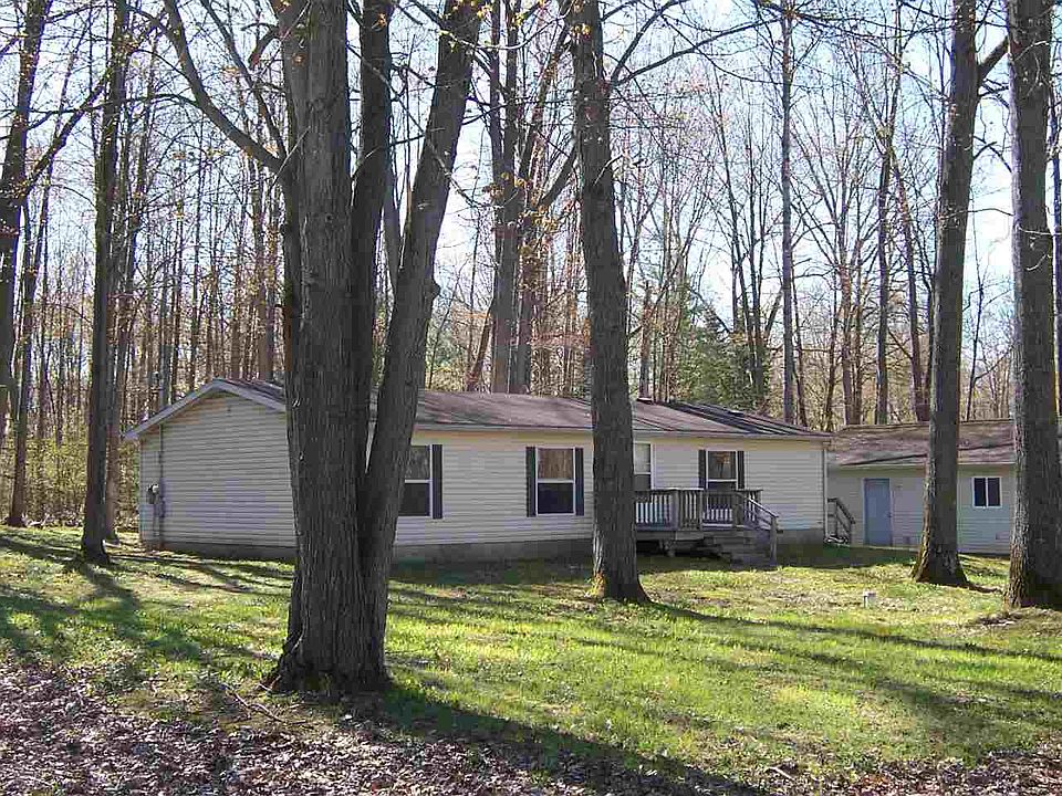 Nice manufactured home in quiet subdivision close to South State Park. Large, wooded corner lot, perfect for children and dogs as streets are lightly used. Three bdrm, Two bath, gas furnace, 2' X 6' construction, 5' well, and a huge 24' X 32' garage. Garage interior has an 8 ft. X 24 ft. workshop at rear. With a little cosmetic work, this home could be a showplace and is priced accordingly for quick sale. Kitchen appliances are included in sale. NOTICE: ALL Buyers attending a showing must sign SHOWING CERTIFICATION and RELEASE PRIOR to showings. All attendees are required to wear facial covering. All attendees should avoid touching all surfaces. Please remove shoes or wear shoe coverings. Once showing is complete, showing agent to sanitize all light switches, door handles, lock box, etc (anything that was touched). Finish showing with extended conversation(s) outside.