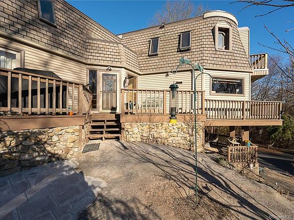 Desire a convenient location with privacy? Then look no further than this one of a kind Contemporary Colonial situated on over 3 parklike acres. Fall in love with this 3/4 bdrm, 3 bath home located in quaint village of Quaker Hill. Light filled w/numerous large windows & slider doors. Abundance of character & unique qualities inside & out! An entertainers delight is the spacious kitchen with exceedingly large center isle, two refrigerators, gas cooktop in addition to electric stove, open to a large family rm. Vast L-shaped combination dining & living rm with unique cathedral wood ceiling with fan & slider out to side yard. Large first floor bdrm with balcony, full bath with washer & dryer. Great option for an in-law situation with privacy for all. Gorgeous foyer has beautiful curved staircase with stained glass window from the historic 1896 Mohican Hotel leading to huge master suite with walk-in closet, slider to balcony & full bath. Opposite the master suite you will find the spacious third bdrm with private bath & large walk-in closet/dressing rm. In the basement you will find a storage room with washer/dryer hook-ups & additional 26x17 heated room offering versatility of a fourth bdrm or family room/den with walkout to covered deck. New flat roof 2021, well & well pump 2013, siding 7 yrs, C/A, generator hook-up, propane heat, 2 car detached garage with loft & skylights, balconies, wrap around porch, decks, pool with deck. Your own slice of heaven on earth!