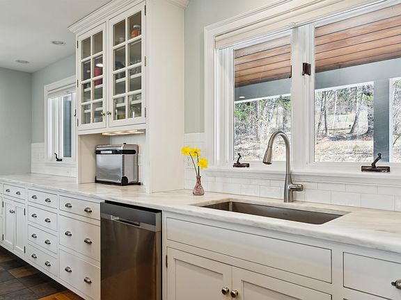 Convenient location, optional 1-floor living, and extensive, thoughtful updates come together in this fully move-in ready home. The main floor includes a large and inviting kitchen with newer stainless steel appliances including a double oven and Wolf range, Crown Point cabinetry, and marble countertops, a separate dining room, living room with fireplace, 2 bedrooms that share a full bath, plus a primary bedroom with updated 3/4 en-suite bath. The lower walkout level features another bedroom, full bath, large playroom or den with Hearthstone wood stove, office space, laundry and workshop, plus plenty of extra storage space. Outside you'll find a newly resurfaced Trex deck from which there are lovely seasonal mountain views, a fenced yard with raised garden beds and mature plantings, and a paved circular drive. Recent updates are numerous and a full list is available on request but energy efficiency was a priority. A fully-owned 10-megawatt solar panel system, an electric heat pump hot water heater, a Level-2 CCS EV charger and Anderson 400 Low-E windows are some highlights. Located almost equidistant to Dartmouth College, DHMC, West Lebanon, and the Miracle, commuting and shopping are a breeze. SHOWINGS BEGIN AT OPEN HOUSE SATURDAY, APRIL 26 10:30-1:30.
