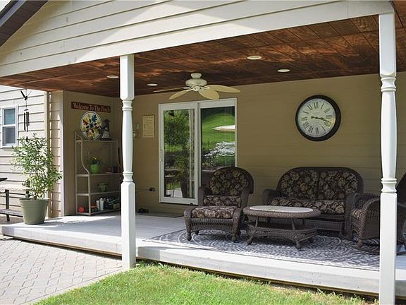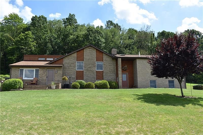 Picturesque 2 acre setting for this unique 3 bedroom home located in Middlesex Township in the award winning Mars Area School District. This home is situated on a park like beautifully landscaped lot with plentiful flowers, waterfall, and fire pit area with electric, and stunning views. Enjoy watching the sunrise from the covered back patio and the sunset from the front porch. This home boasts a newer roof, furnace and air conditioning. Fully equipped eat-in kitchen with hardwood floors leads to low maintenance covered trex patio which overlooks the waterfall. Perfect home for entertaining, large family room with wood burning fireplace in lower level, 23X21 bonus game room on main floor, expansive floor plan. Basement area has an extra finished area currently used as a home gym. Custom dollhouse style storage shed located at the corner of the property. Original owner, property shows tremendous pride in ownership very well maintained.