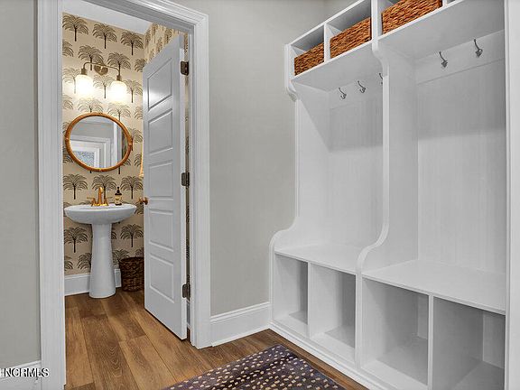 Welcome to this stunning one-year-old home in Carolina Creek. Backing up to a serene conservation area, this residence offers exceptional privacy and modern living. Upon entering, you'll find the main living areas situated on the first floor, all featuring elegant luxury vinyl plank flooring. The home's sophisticated touch is enhanced by upgraded Visual Comfort Designer Lighting and stylish 5-panel doors throughout. The living room invites you in with its gas log fireplace (never used), creating a cozy atmosphere for those cool evenings. It opens to a kitchen equipped with premium Thermador appliances and quartz countertops, which you'll also find in the bathrooms. A drop zone off the garage conveniently keeps all your outerwear and bags organized. The second floor houses the guest bedrooms and the primary suite, complete with a luxurious tile shower and frameless glass door. On the third floor is a flex space adorned with built-in bookshelves, ideal for a home office, hobby room, or entertainment area. This floor also offers two accesses to walk-in attic spaces, providing abundant storage options. Outdoor living is enhanced by a screened porch overlooking the private back yard, with both front and back yards featuring an irrigation system. Practical features include a termite bond, saltwater softener with carbon chlorine filter, and reverse osmosis system. Carolina Creek residents enjoy amenities such as a swimming pool, picnic and grilling area, and sidewalks. The low quarterly HOA dues of $358.50 also cover trash and road maintenance. This gorgeous home seamlessly blends modern elegance with practical living in a peaceful, private setting.