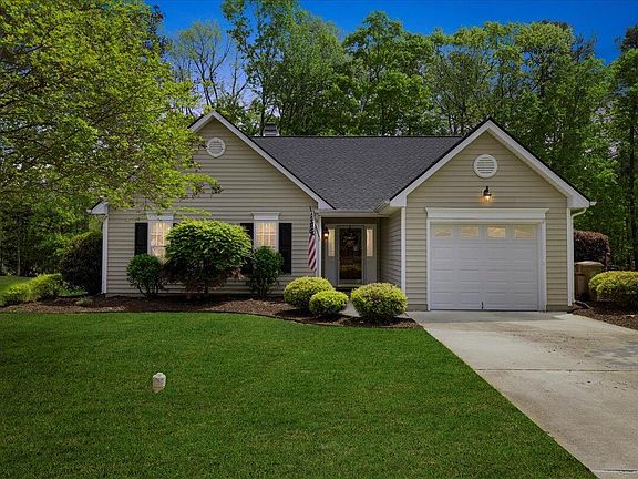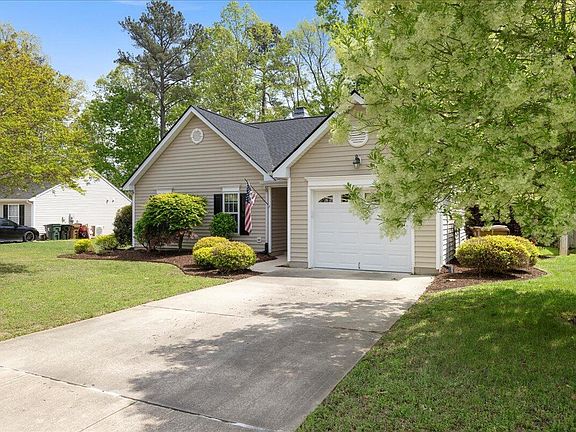 Say goodbye to stairs (mostly) and hello to the unicorn of Holly Springs — a beautifully updated ranch under $400K! Yes, you read that right. Not only is this home rare because of the price point (go ahead, try to find another one), but it's also practically step-free — just a couple of baby ones to keep life interesting. Your knees, your groceries, and your robot vacuum will still be thrilled. Tucked away on a peaceful cul-de-sac in a sought-after neighborhood with amenities, this home offers the perfect combo of privacy and proximity — you're minutes from downtown Holly Springs, shopping, parks, and easy access to 540. The 2024 architectural shingle roof and professional landscaping are the cherry on top of the curb appeal sundae. Inside, it's open, airy, and stylish, with cathedral ceilings, LVP flooring in the main living area, and brand-new plush carpet (2025!) in the bedrooms. The kitchen brings the wow: granite countertops, custom slide-out shelves, undermount sink, soft-close pull out drawers, and a shiny 2023 French door fridge that stays. The primary suite? Total showstopper. Fresh paint, vaulted ceiling, and a spa-worthy en suite remodeled in 2024 with heated tile floors (goodbye, cold mornings), a frameless walk-in shower, dual vanities with quartz counters, and a sleek barn door for a touch of farmhouse flair. Outside, enjoy a fully fenced, wooded backyard with a freshly painted deck for weekend hangs, and a matching shed with a new roof that's ready for all your hobbies or holiday décor hoarding. With updated major systems (HVAC & water heater in 2022), surround sound wiring, epoxy garage flooring, and washer/dryer included, this home is ready to make your life easier — and just a little cooler.