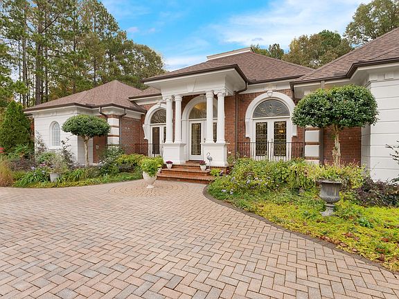 The level of detail in this brick RANCH home in exclusive Chadbourne is unmatched! Colonnade entry w/lit barrel vault ceiling, Wood paneled walls+coffered ceiling living rm/study & Stunning dome ceiling dining rm-all w/French doors. Vaulted family rm w/gas FP+access to light-filled sunroom overlooking private acre+ backyard! Eat-in kitchen offers solid wood cabs,granite,updated appliances-incl cooktop w/downdraft+pantry. Spacious owners suite w/dbl vanities, jetted tub/sep shower,WC+WIC. Comm pool+tennis!