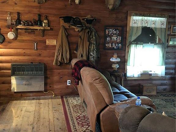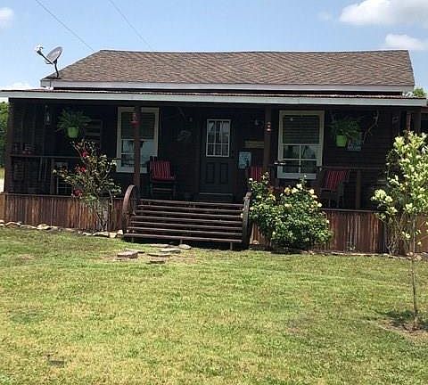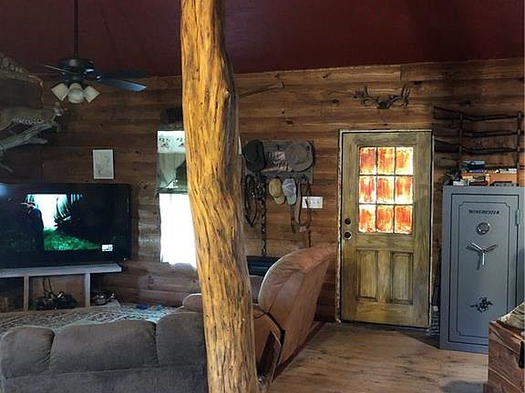 Cedar Siding exterior with D log pine interior home with 9' walls. Home has the cabin look and feel with an open floorplan. Loft above bathroom makes a great place for the kids to sleep. The floors are 1x8 lap n gap knotty pine. Home features a 20 x 24 covered deck which is a great entertaining space along with a 8x28 covered front porch which is the perfect place for your rocker and relaxing overlooking the pasture area with creek and trees. Property also has a storage shed with a chicken coop and dog pen. Additional lot available with carport for an additional $12,500.