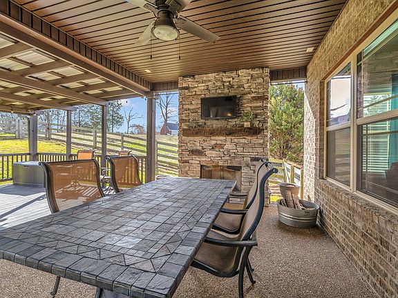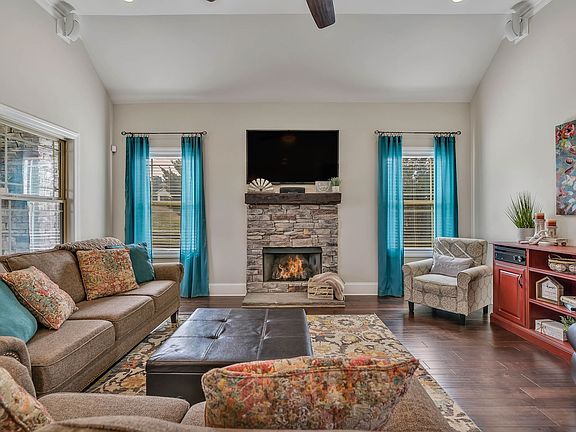 Stunning home on just over 1 acre with NO HOA! This gorgeous 4 bed/3.5 bath home features lots of charm & customized elegance. With a Primary Bed Suite on the main level, a Bonus Room, Formal Dining, an Office, 3 Fireplaces & a Gourmet Kitchen w/ granite countertops & a pot filler, 3 rooms w/ gorgeous coffered & tray ceilings...this stunning home leaves little to be desired. The home also has a Mud Room, 3 Car Attached Garage (one w/ 12' door used as Workshop), Large Covered Back Porch w/ a Wood Burning Fireplace w/ TV Hookup & a Cross Fenced Backyard for pets! Large 16x40 detached Workshop w/ Electric & Garage Door Opener, Concrete basketball court & batting cages!! Fiber Internet offered, 5 Minutes from the lake, playhouse w/ clubhouse conveys, & breathtaking views from the front porch!