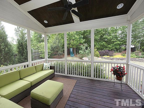 Bright Light Filled Home Full of Details Top to Bottom-Chef's Kitchen W/THERMADOR Stove 6-BURNER Gas Range & Vented Hood-Custom Kit Cabinets-Island w/seating &deep sink. Designer lighting! Hardwoods on Main & Stair Treads-4 Large Bedrooms -Jack & Jill bath & F Bath for Guest/Teen Suite + Spacious Bonus & Master w/Sitting area -Mudroom & Bench. Private Fenced Luscious Landscaped Backyard. Wonderful Screen Porch/Patio & Rocking Chair Front Porch. Walkup 3rd Storage-Com Pool/Fee-Mins to Shopping & 540 & RDU