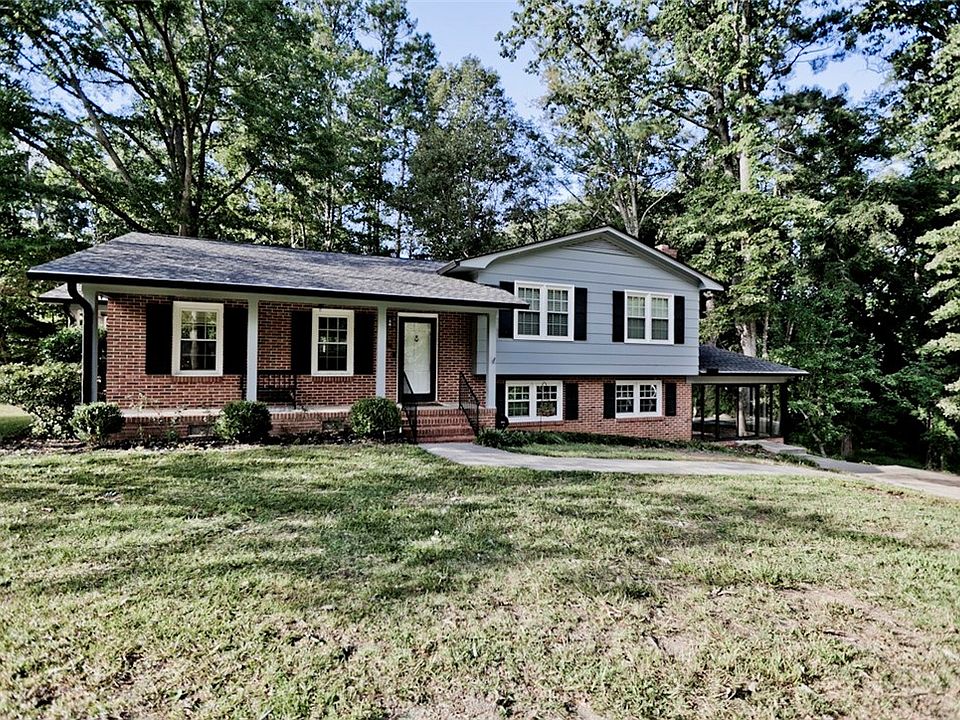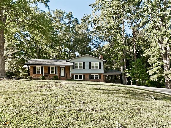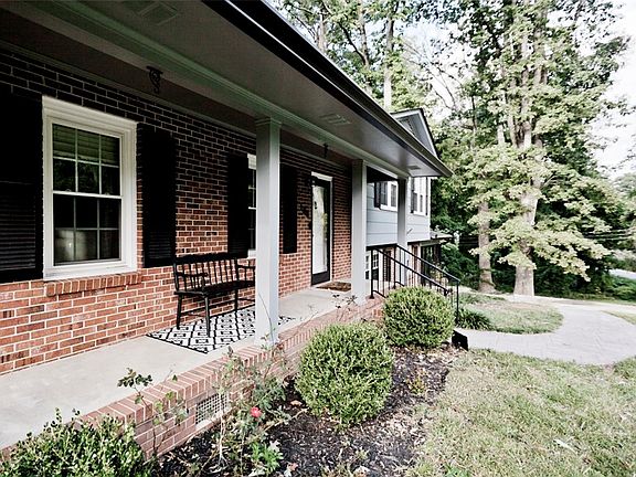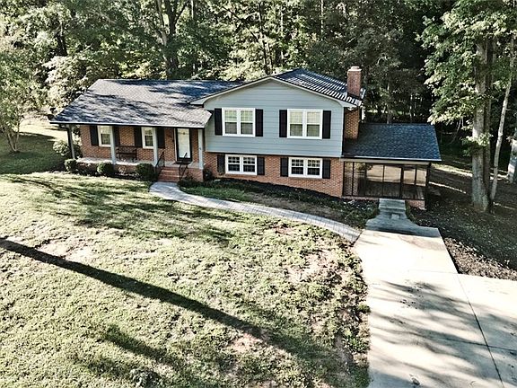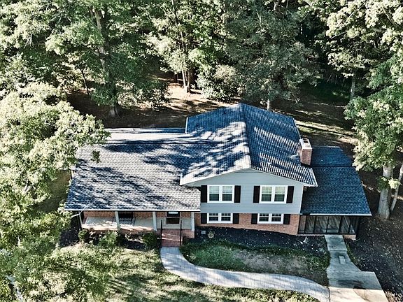 Up a short flight of stairs you will find a large master bedroom, a second bedroom, a huge bathroom with double vanities, and a laundry room that could easily be converted into an extra bedroom or office space. On the lower level you will find an additional bedroom, a bathroom and a family room with a brick fireplace and a "buck" stove insert. Just off the family room is a large sunroom with plenty of windows to take in the view of the wooded back yard.