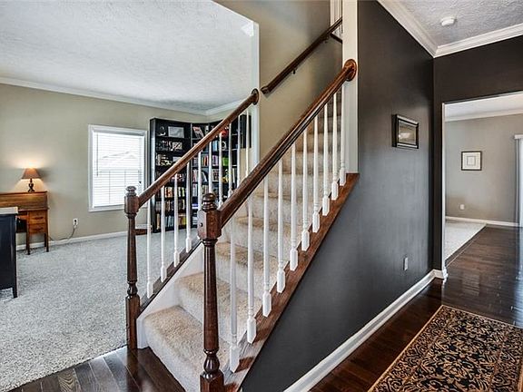 What a beauty! Level fenced backyard. Foyer offers crown and wide plank dark distressed hardwood that carries on through kitchen and dining room. Living room w/crown and frizae carpet.Center island/breakfast bar kitchen w/granite, dark cabinets,trendy stainless tile backsplash,stainless appliances including 5burner gas stone,breakfast nook has slider to deck and is open to family room w/stone fireplace. Upstairs find vaulted master w/oiled bronze ceiling fan,dressing area/sitting room and large walkin. Both upstairs baths have ceramic,oiled bronze fixtures,double basins. Amazin lower level has full wet bar, distressed hardwood,brick backsplash,3 TV mounts and hook up,full bath w/tile surround shower and bedroom 5 or exercise room. 1year warranty. Clean and Move in