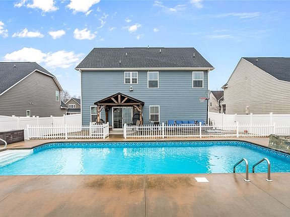 This 5 BEDROOM 3 BATHROOM home features a SALTWATER POOL and an OFFICE/HOBBY room. Located in the charming Bronson Ridge subdivision, this home boasts a spacious floor plan that is perfect for entertaining, both inside and out. Parallel to the entryway is a convenient office space with built in floor to ceiling bookshelves. The open kitchen / living room / dining room area is the perfect space for all of your gatherings with family and friends with durable, easy to clean LVT flooring. The kitchen includes the refrigerator and features a gas stove, built-in microwave, and a pantry with island seating for informal dining. Opposite the kitchen, you'll find a full guest bathroom connecting to a bedroom, hallway storage, and a built-in hall tree with bench leading to the 2 car garage. On the upper level is the owner's bedroom plus 3 additional bedrooms. The owner's suite features tray ceilings, 2 walk in closets one with a custom Closet Pro system. The owner's bathroom has a toilet closet, garden tub with subway tile tub surround, and step-in shower with shower seat, subway tile, and glass doors. There are 3 additional bedrooms, 2 with walk-in closets, and a full bathroom. Situated in the center of the upper level, is a laundry room WITH SINK. The recently built (2020) saltwater pool with dive rock will make your home the go-to spot for those hot Summer days. A privacy fence surrounds the backyard oasis with plenty of room for outdoor seating and recreation. The covered patio area is perfect for grilling or finding refuge in the shade. NOTE: all wallpaper and decals are easy to remove peel and stick designs. NO CITY TAXES, PRIME LOCATION, and HIGHLY DESIRABLE SCHOOLS, don't hesitate a smidge and head on over to 108 Bronson Ridge!!