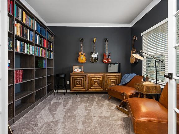 - Bookcases, Built-in Features, Bathtub, Tray Ceiling(s), Ceiling Fan(s), Dual Sinks, French Door(s)/Atrium Door(s), Fireplace, Granite Counters, Garden Tub/Roman Tub, High Ceilings, Bath in Primary Bedroom, Pull Down Attic Stairs, Smooth Ceilings, Separate Shower, Upper Level Primary, Vaulted Ceiling(s), Walk-In Closet(s), Walk-In Shower, Wired for Sound, Window Treatments