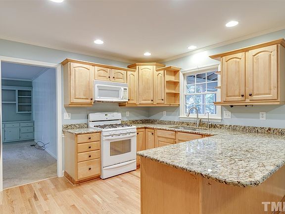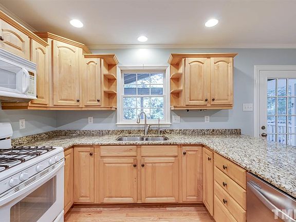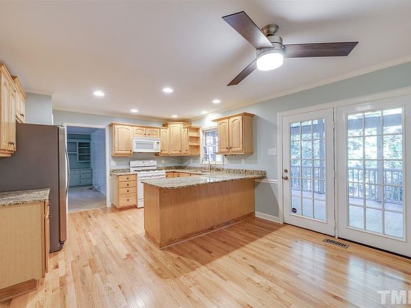 Cul-de-sac living in N Durham! This 4BR, 2.5BA home has a updated kitchen with granite countertops and newer cabinets. Home has beautiful hardwood flooring throughout most of downstairs, first floor bedroom with bath that could be used as an office, and large master suite. Come check out the private setting with lots of outdoor living space, including a large deck, huge screen porch with vaulted ceilings and a private deck with a hot tub. Oversized 2 car detached garage.