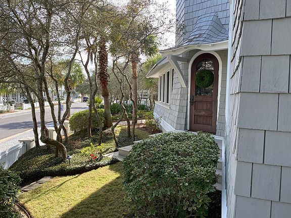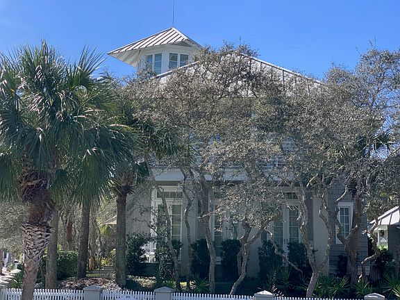 This sensational beach home atop one of the highest lots in Carillon Beach is a must see. Designed by the award-winning Dungan Nequette architecture team, the home has been featured in Atlanta Homes and Coastal Living magazines as well as being highlighted twice on HGTV. This family compound consisting of main house, guest quarters, and golf cart shed, all remind you of the timeless wood singled coastal homes still in existence. The home is 3 bdrms and 3 baths along with separate en suite guest quarters. Spectacular craftsmanship envelops this home from the floors to the barn doors, to the amazing circular staircase to the tower. The numerous porches overlooking lush landscaping in this private compound make it irresistible. Being sold furnished with exclusions list.