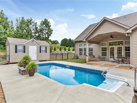 Welcome to 108 Carnoustie Circle in Innisbrook subdivision. This Ranch style home is like new, was built in 2017. Spacious 0.63 acre lot includes fenced back yard, a 12' X 24' saltwater-heated inground pool with separate 17' X 10' custom storage building. Open floor plan with elevated ceilings on the main floor, Gorgeous wood floors, large windows for an abundance of natural light. Large family room with gas log fireplace, bright kitchen with white cabinets, stainless appliances and granite counters. Separate breakfast nook and dining room. Three bedrooms on main level including master suite that includes master bathroom with garden tub, walk-in shower, and walk-in closet. Upper level consists of forth and fifth bedroom or could be used as a bonus room, and full bathroom. Perfect for the growing family, located in the Wren school district. Close to Greenville, Easley, and Clemson. Don't miss out on this beautiful and immaculate property.
