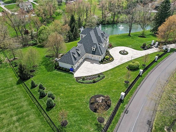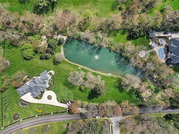 This sprawling 3-acre estate featuring 6-beds and 6-baths is the pinnacle of luxury living. As you enter through the automated gate, you're welcomed by a meticulously landscaped property featuring a large private lake and a spacious deck perfect for tranquil relaxation. The interior exudes a unique blend of sophistication starting with the custom kitchen equipped with raised, inset cabinetry, luxury quartzite countertops, and high-end appliances. The home boasts new hardwood Canadian maple floors throughout the first floor. The opulent library, with paneled maple walls provides a serene retreat, while the presence of four fireplaces throughout adds a cozy touch to the estate’s elegant ambiance. The primary bedroom features new Kane carpeting, Schonbek chandeliers, and an en-suite with black walnut vanities and a large walk-in dressing room. Entertaining is easy in a basement with an 800-bottle wine cellar full gym, bourbon bar, and a pool table. A five-door garage holds up to six cars.