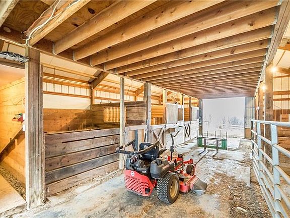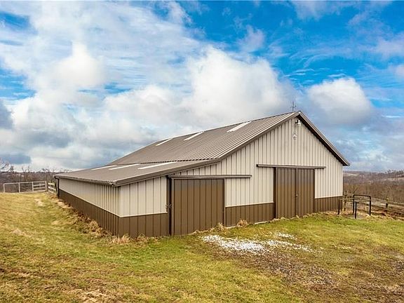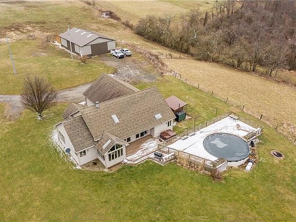 You'll have plenty of space to roam on this 60+ acre horse farm with a beautiful house and TWO MASSIVE outbuildings. On this great property you'll find a mixture of open fields & wooded land for whatever you're into! Your 3 stall horse barn w/ lean-to is 55x60. While the pole building for your toys is 36x60. Inside, the home is just as spectacular with beautiful vaulted ceilings, a focal point fireplace & skylights. Your dining room has amazing 270 degree views of your acreage. In the kitchen you'll have plenty of storage space, an open layout and a large center island. The flexible layout family room & office space have stunning HW floors, high ceilings & tall windows. Beyond your mudroom/laundry room, you'll find two great bedrooms and a full bathroom, plus the cozy master suite with a nice walk-in closet, dual vanity, deep Jacuzzi tub and sliding glass doors that lead out to your private deck to jump into your pool. Downstairs, the huge unfinished basement has a ton of potential!