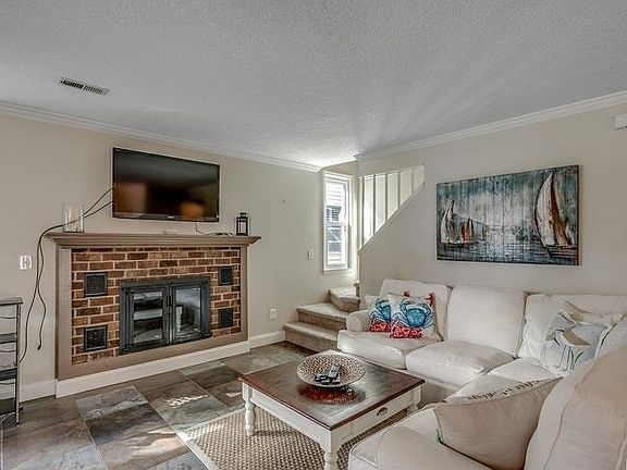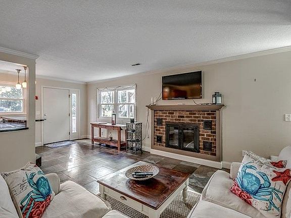 Turnkey single-family home with numerous upgrades located within walking distance to the beach, Main Street and McLean Park. And no HOA! Ceramic tile flows throughout the entire first floor which offers an open floor-plan. The kitchen comes equipped with updated maple cabinetry, stainless steel appliances & solid surface countertops and opens up to the great room with a wood-burning fireplace. The first floor master suite boasts a large walk-in closet with shelving & dual sinks and grants access to the Carolina Room overlooking the mature, fenced-in backyard with storage shed wired with power. Other notable items include: new trex decking and railings for front porch and upstairs balcony; updated half bath downstairs for guests; thermal pane windows; separate thermostats for each level. Call your agent and schedule a showing today!