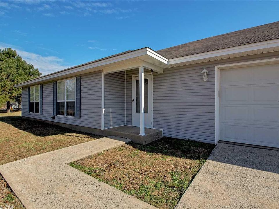 Enjoy rural living in this charming country home on over 6 acres! This home features large eat-in kitchen and lots of natural light in living area...split plan with guest bedroom adjoining kitchen. Master features separate vanity area, with walk-in closet and walk-in shower. Beautiful land with 24x24 Shop and storm cellar. Lots of updates in this one including new windows/doors and new dishwasher will be added. Refrigerator, Washer & Dryer stay! Note Arkansas's Inter-district School Choice applies!