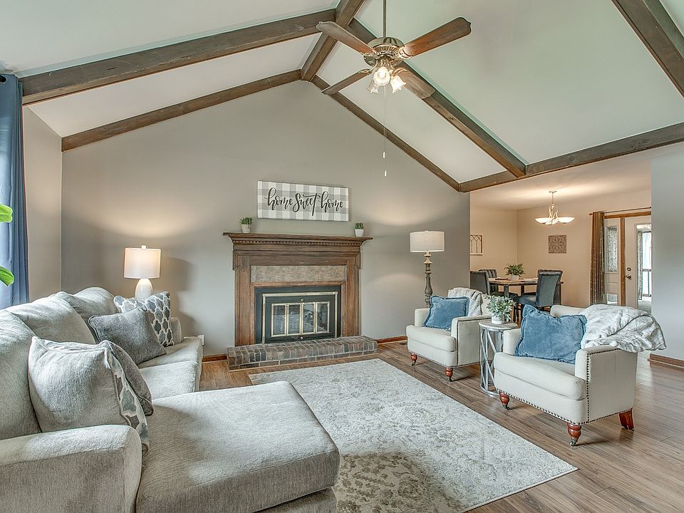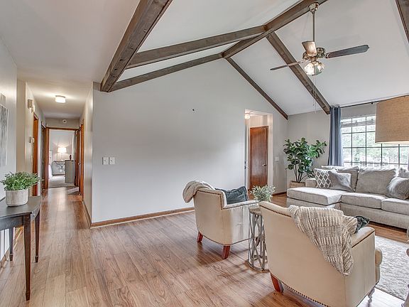 The perfect kind of house-- ready to move in today, but not quite perfect enough that you feel guilty about tweaking a few things to make it yours. It sits at the end of the cul de sac; the fenced backyard has mature trees and flower beds already in place but ready for your choice of landscaping. Along with its three bedrooms and two baths, this home also features a living room with Gatlinburg style ceiling beams and fireplace and a giant covered porch off the dining room... she is a cutie!