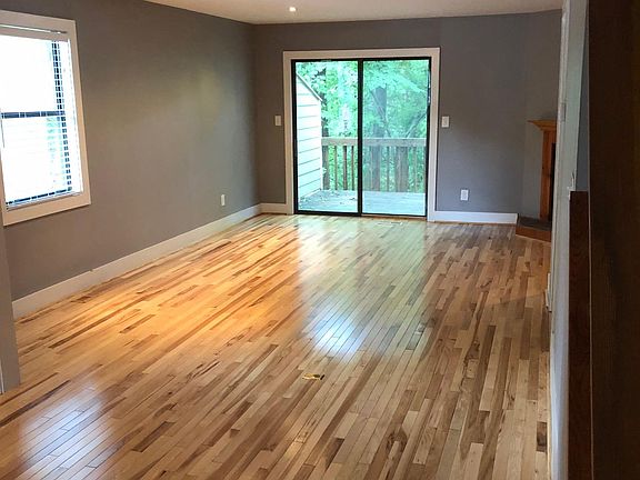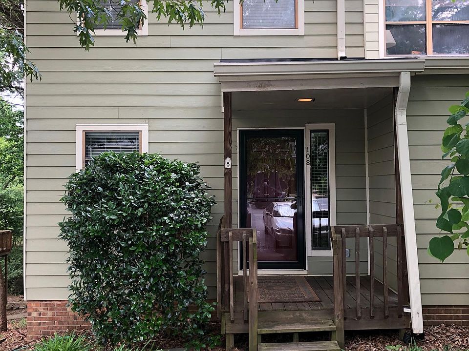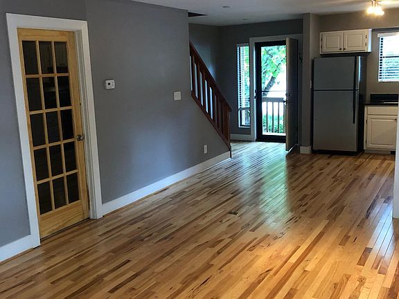 3 story end unit. Hardwood on main and upstairs floors. Two bedrooms, one bath, washer and dryer in utility closet with extra storage space, on top floor. Ceiling fans in both upstairs bedrooms. Kitchen and living area with wood-burning fireplace and private deck on main floor. Open design. Granite counter tops in kitchen. Tile floors in bathrooms. Large bedroom or additional family room, closet, kitchenette w/ small fridge, counter tops, cabinets, sink, full bathroom and screened-in porch on bottom floor. Near three bus stops. Ample parking with one assigned space. Outdoor landscaping, gutter-cleaning, power-washing, etc. maintained by HOA. Very quiet neighborhood with lots of trees/shade. Owner pays home owner association dues. HOA handles outside maintenance including landscaping. Tenant pays electricity, water and sewer, and cable/internet (if desired). $500 pet deposit.