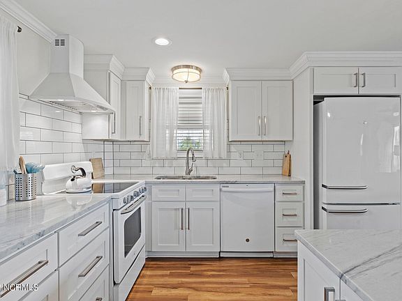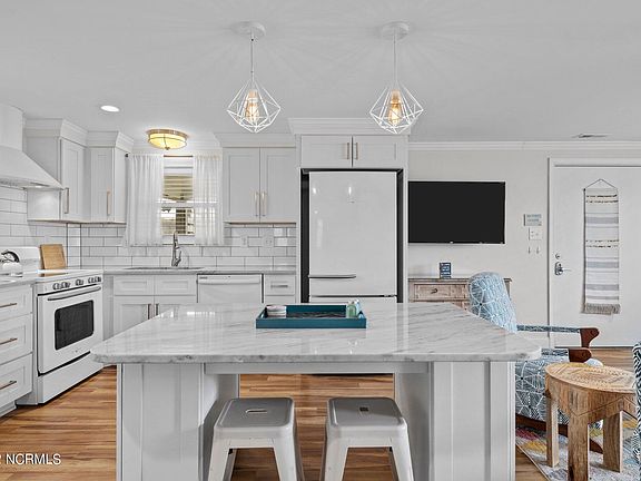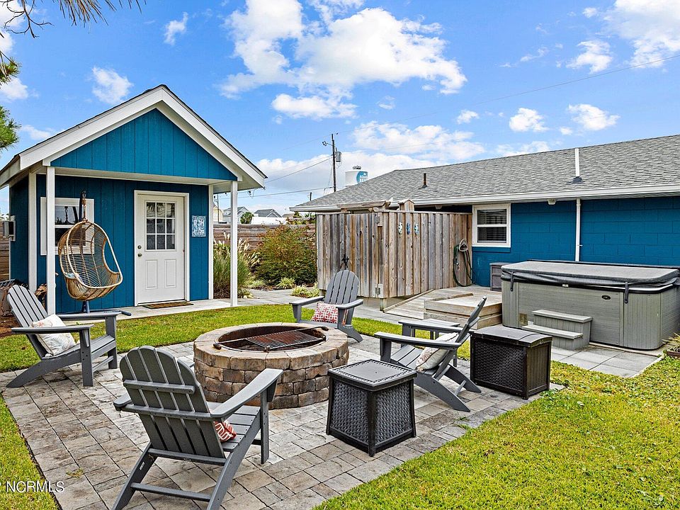 A real gem! This cute little furnished beach cottage was impeccably & completely renovated in 2016 into a perfectly balanced, comfortable space w tons of character AND class AND an outdoor space that is just delightful. The open cheery & bright floorplan lends itself well to family time. Features include: classic white cabinetry, granite counter tops, LVP flooring in the living area and bedrooms, barn doors for added charm and spaciousness, nice size pantry w a washer/dryer combo for space utilization, large granite topped work island w lots of cabinet space and bar seating, vinyl windows, and contemporary ceiling fans throughout. The bath was tastefully designed for privacy w limited space in mind and has a separate toilet and shower area from the vanity. A glassed walk-in shower, circle penny floor tile and contemporary fixtures give the bath a spacious satisfying feel. A large screened versatile porch enlarges the indoor living space by 312 sq ft. Cooled by the southwest ocean breezes, there is room for a comfy sitting area, a dining nook and a bar if you want. From the porch you walk outside to an unexpected outdoor retreat! Designed for privacy and FUN you will find a firepit patio with comfortable seating, a grilling area, an outdoor shower, and ramped hot tub...all surrounded by a good looking wood privacy fence. And that's not all that is out in that little oasis....there is an outdoor shanty (104 sq ft w loft) that sleeps 4! When you pair that with the outdoor shower AND toilet you have created essentially another bedroom & bath! There is a hidden storage shed out there too for all your beach toys. So well thought out & efficient! Beautifully landscaped to add privacy & convenience using bricked walkways and decking. Great off street parking. Located just a few blocks from the ocean w a public boat ramp nearby, this meticulously and well thought out spot would make a fabulous beach retreat or a rental machine. Everyone that walks in will love it!